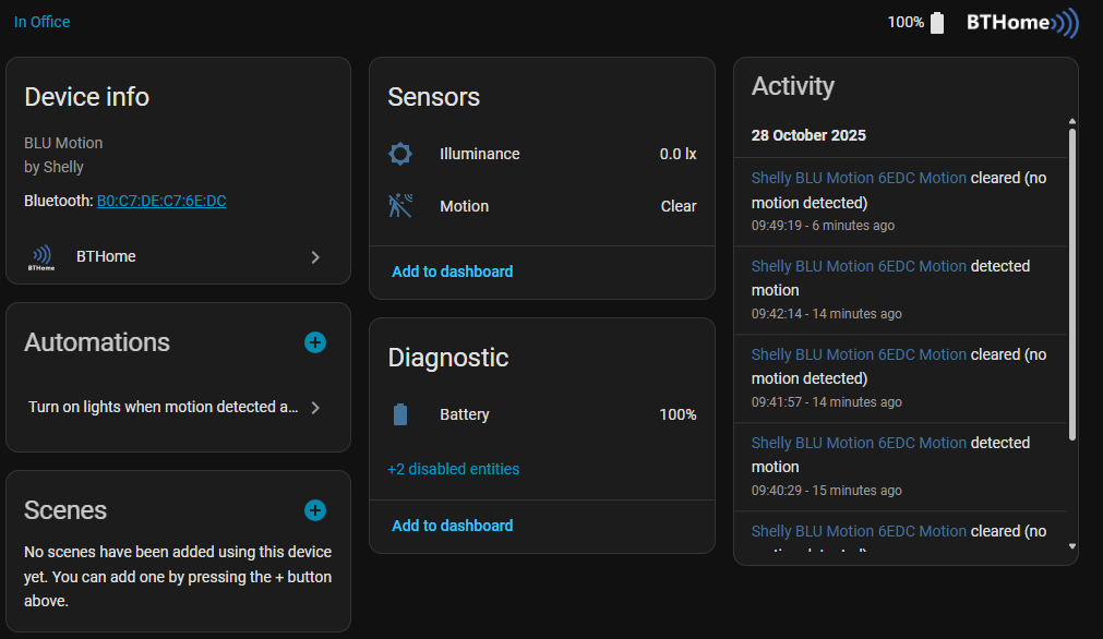 The Shelly Blu device has been in Home Assistant (sitting doing nothing) since last year when I did the above review… so I took a look…