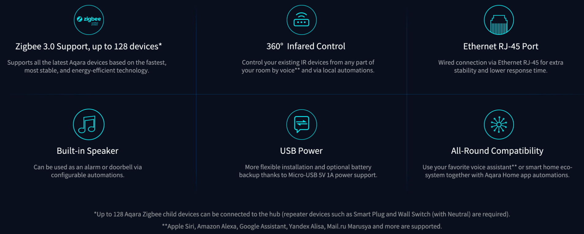 So as I was starting to get to grips with controlling my lights – I noted Google griping that it had found something called HUB 2 and when I clicked to progress that – not found – how can it be not found when it’s just found Hub 2. The only Hub 2 I could think of was my Switchbot Hub 2 – definitely switched on and hooked into the WiFi – so I’m no further forward with that one. Not realising it was the Switchbot Hub, I contacted Aqara and asked them about their Hub 2 – and witin 2 days, one arrived at my door here in rural Spain… amazing. However – it’s actually called HUB M2 and supports the many Aqara Zigbee devices which I currently have running under Zigbee2MQTT… but also tons of other stuff – rather than re-invent teh wheel, I’ll just copy a screenshot of their ad below.. check out all the things this baby has. I have to say for some time I’ve been impressed by Aqara – they even came right out with it and said that their cat feeder isn’t currently supported – without being asked.