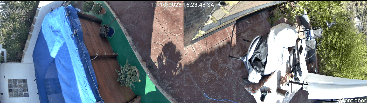 Look and you’ll see on the left, the side of our building then our pool. Middle the side of the pergola then our front gate. In other words everything.