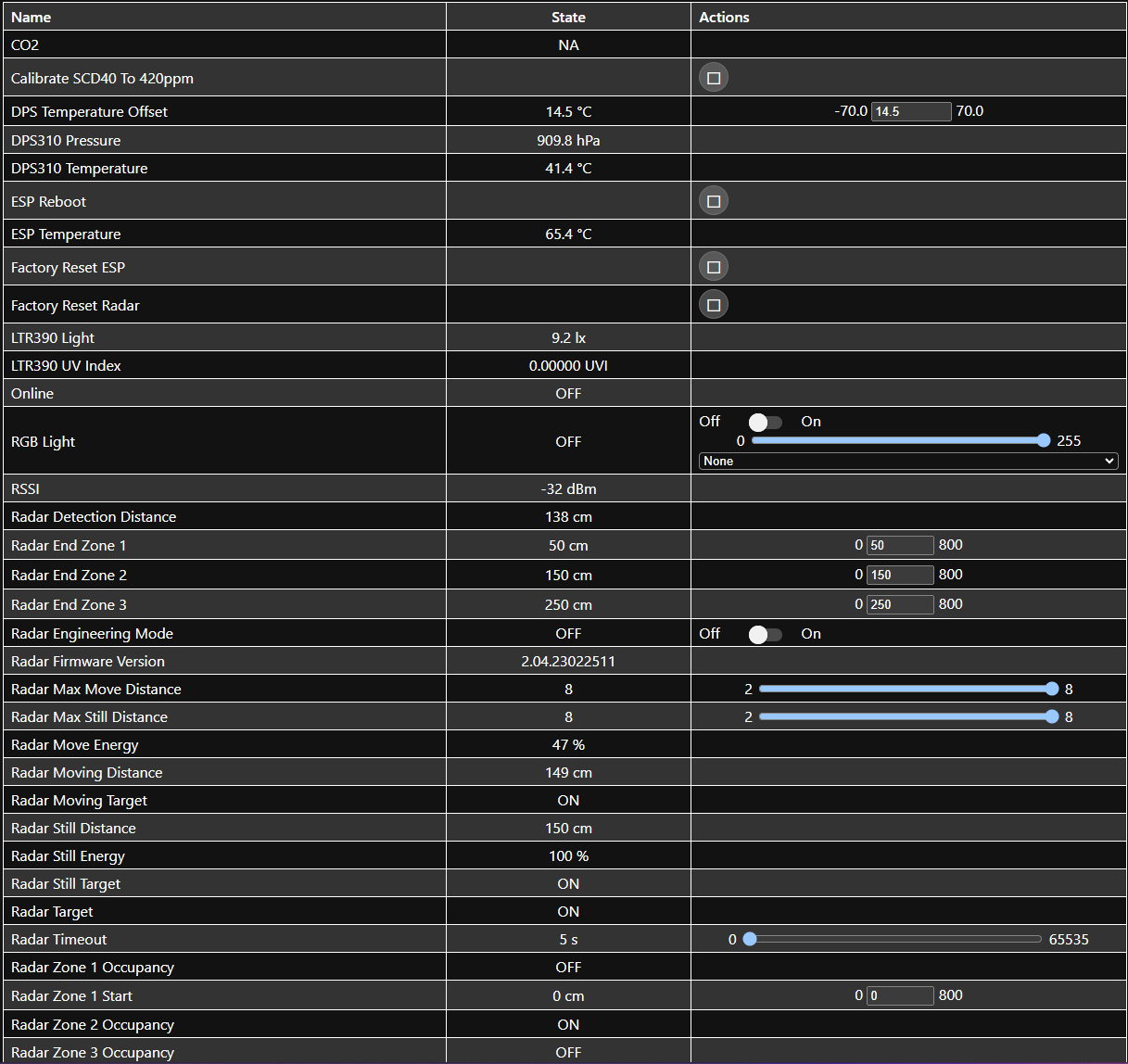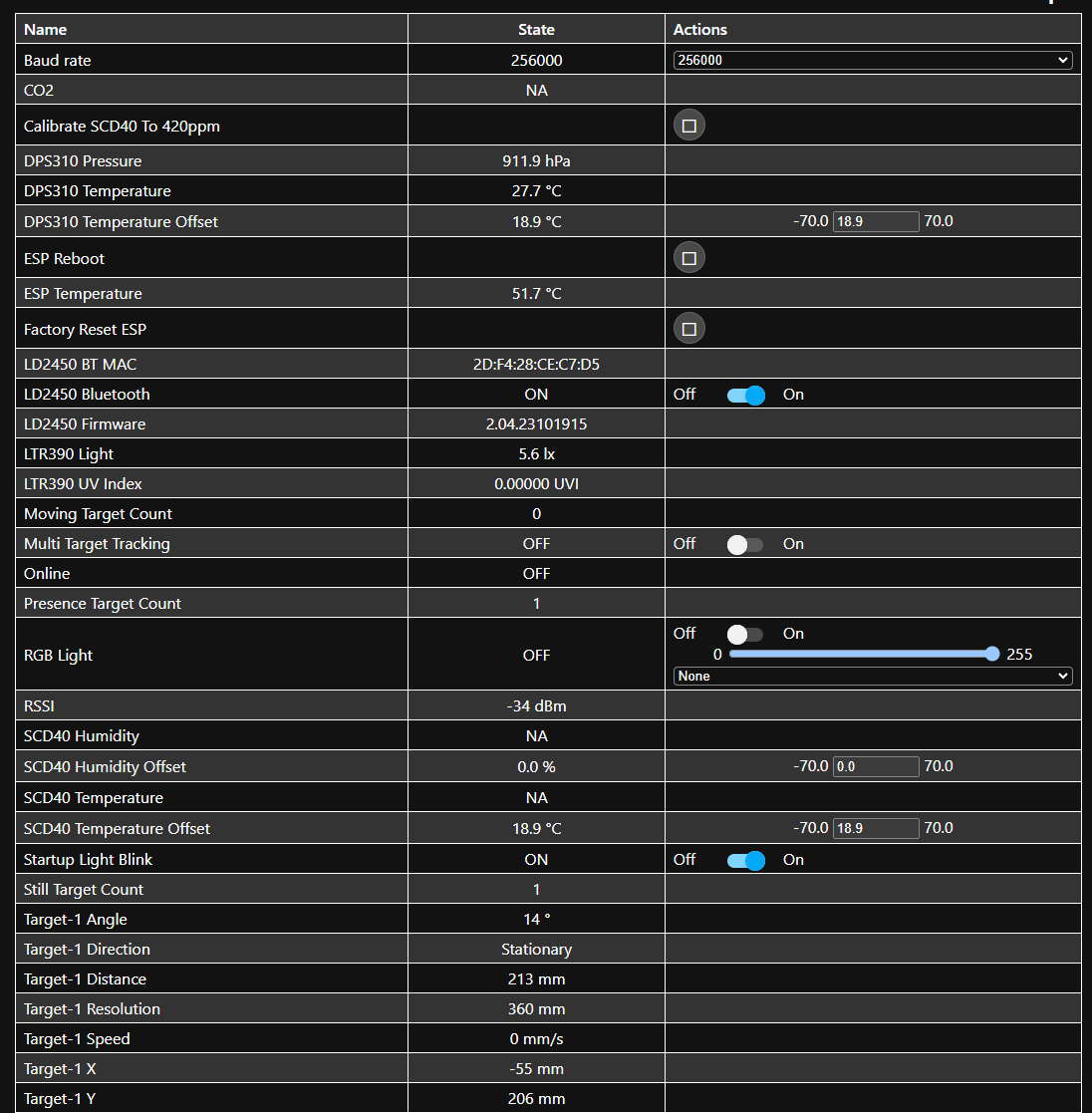 This is going to take a while as the radar sensing looks different to the sensing on the previous device – once again we have light levels, pressure and temperature as well as the radar stuff – all of which can easily be brought into Home Assistant.