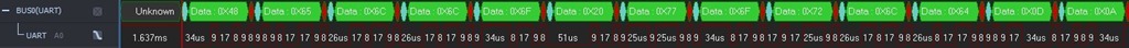 Sure enough I selected the protocol, set the baud rate (there is an auto detect), pressed the start button and – 0x48, 0x65,0x6c, 0x6c, 0x6f, 0x20, 0x77, 0x6f, 0x72,0x6c, 0x64, 0x0d,0x0a