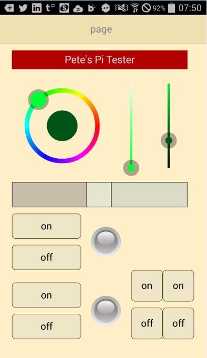 However I’ve now put NETIO in charge of this lot and I have to say it’s working a treat. Here is my current test screen on the Samsung S4. I was going to use the NETIO text input box but the author doesn’t seem to have finished this off as it looks awful (it works, it just looks awful) so I’ve missed that off for now.