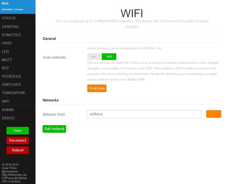 This is a simplified recipe to kick-start using Espurna as a base OS on which one can develop some quite sophisticated things. Maybe it isn’t the best canonical recipe, but I hope it can help a quick startup. The essential trick is to make a good use of ESPURNA_CORE and/or custom.h: