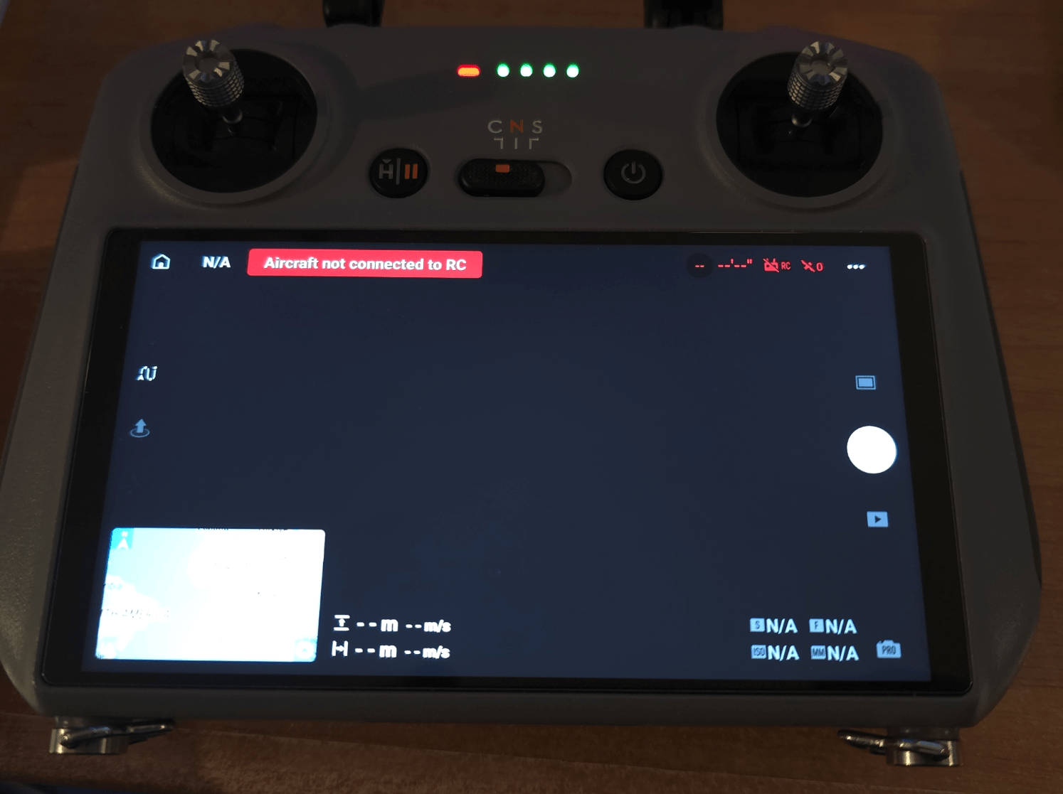 Trying to show you the RC2 screen is fun as at a decent exposure, the corner MAP is whited out. Here’s the controller. You should see some information, not much as the drone is disconnected… but on the bottom left of the screen which normally shows the drone live image, is a map. Once a drone is connected, the map will auto-locate – but it can be set manually – and can also be expanded to cover the whole screen when needed.