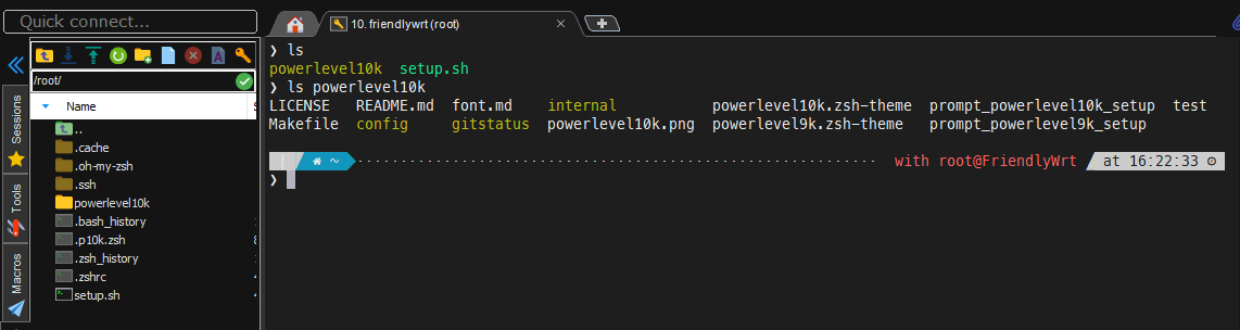 From the start – terminal with a monitor and keyboard, to LUCI to an SSH session. The colours of the latter were boring white but my friend Antonio (Mr Shark soon put that right – see below ZSH and powerlevel10k running on the R5S and displaying in an SSH session in Mobaxterm on my PC).