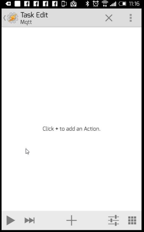 So then you should be asked for a new TASK – if not – ask the people who desgned Tasker because it worked for me (I’m doing all of this from scratch now as I build up this blog entry). Give the task a name – I chose to call it MQTT. Call if FRED if you like. Then you need an ACTION for that task.