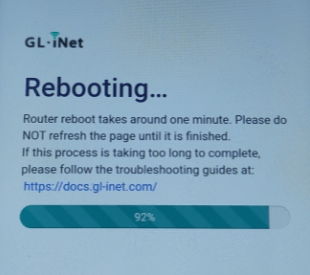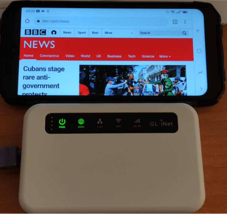 Step 1: The Pulu Power indicator has gone from 50% to nearly fully charged in the hour I’ve been discussing life with people on Facebook. The phone has noticed access point “GL-XE300-xxx” – which has to be the Puli. I guessed the default pasword would be “goodlife” as with their other products. Correct. Connected – no Intermet, That would be right as nothing is attached to the Puli apart from power.