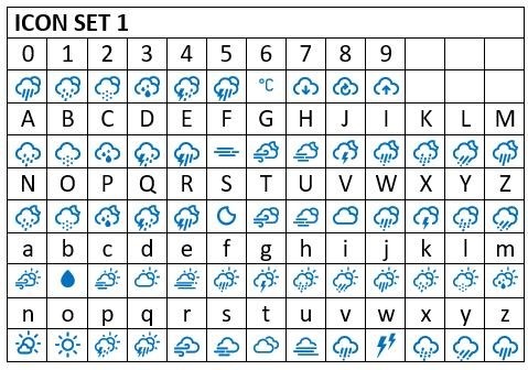There are 3 icon fonts – the first is shown here -part of the problem was figuring out how to get them into the manual then I realised that as they were TTF fonts, temporarily installed on my computer while creating the GCLD fonts – it was simply a matter of making a table in WORD – seems simple now.
