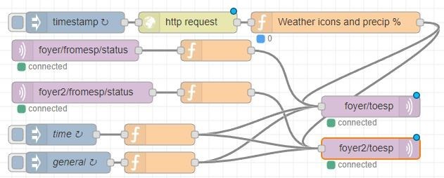 For actual use – and merely out of interest as everyone does things differently, I made the following flow in Node-Red for the display above (well, for two of them actually).