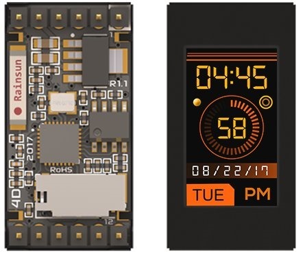 0.9” – 80px by 160px full colour with WIFI… at $19.95 it isn’t cheap but it is LOVELY – unlike the SSD1306 which is a PART and a pain to get a bezel for, the front of this is a nice black rectangle – ready to fit into a suitably sized front panel hole. You can program it with Arduino Core or 4D Systems own software.