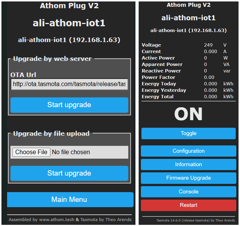 Suer enough – 5 minutes after I started the upgrade, time used to write this explanation, the device was bang up to date at v14.6. (I did have to hit refresh on my browser to get the final page but that’s quite normal). Ok the reference to Athom had disappeared at the bottom but all my settings etc., all intact.