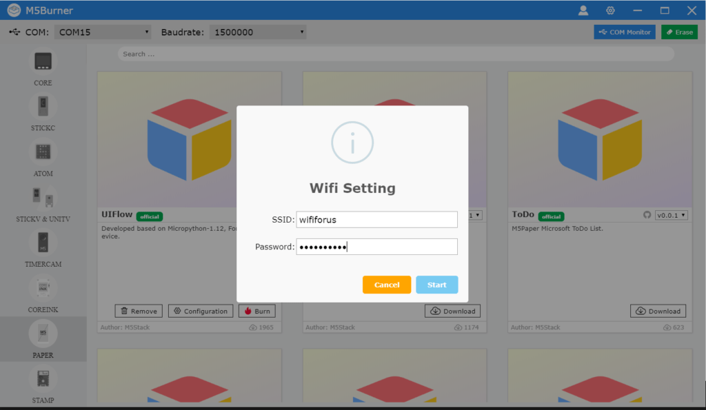 Of course, watching the demo is all very nice but then you’ll want to do more with M5Paper. Initially, UIFLOW support (i.e. easy programming) was not available for this product but today you can download M5BURNER to your PC from here.