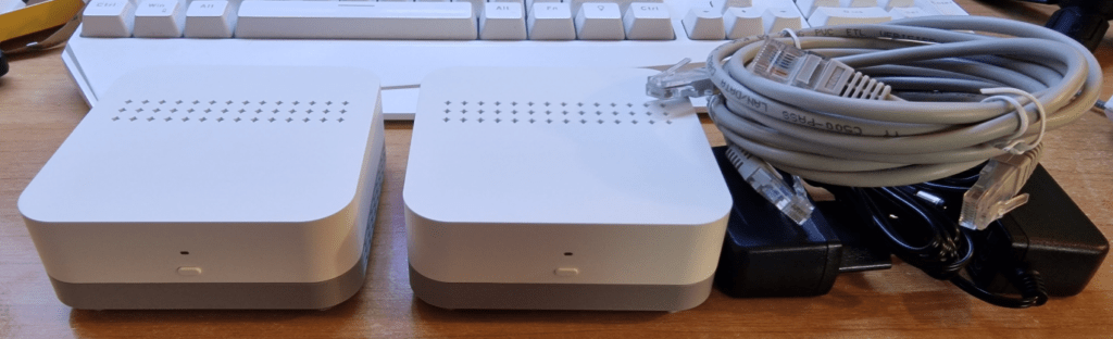 An interesting title with the assumption of a certain “home” size. I’m confident this mesh WiFi router pair will handle our small-ish home here in Spain – the box claims “Covers up to 300m2” and “Ideal for 1-500Mbps fibre”. It says nothing about 100Mps incoming 4G but then I guess those of us using mobile providers for the home are a tiny minority. Here’s the Meross link for the mesh routers. (I’m sure that’s not how you spell “pairing” 🙂 )