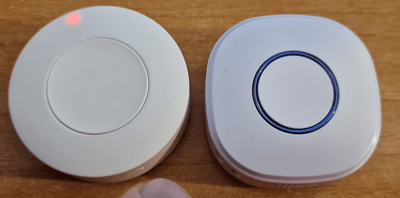 The latter has just a single RED LED for indication but then Sonoff are promising a 4-year battery life. The Shelly on the other hand uses in internal re-chargeable Lithium battery with USB charge – it’s been sitting on my bench for months not connected to anything but responding quickly to button presses – and giving off a nice coloured light ring when pressed. I have no doubt the Shelly charge will last nothing remotely like 4 years. Which would you prefer?