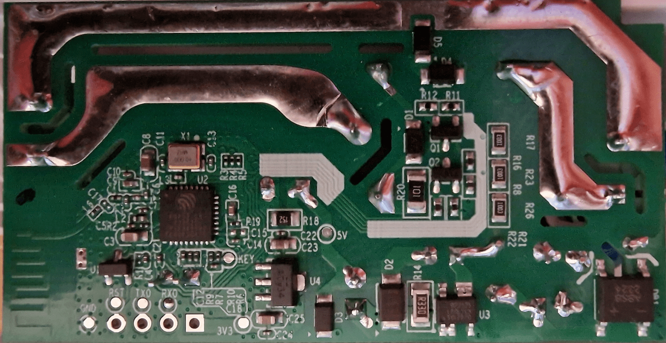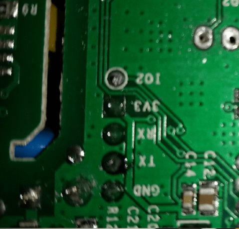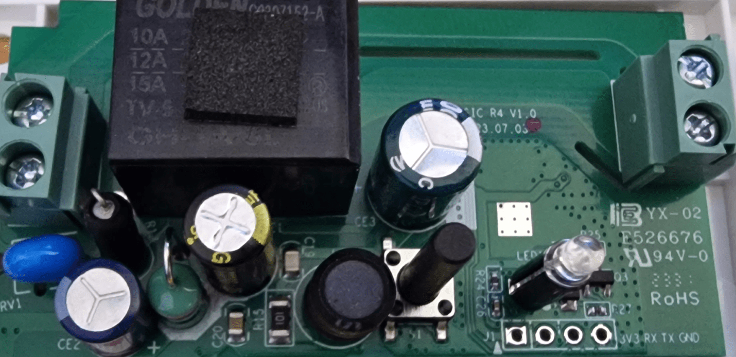 So it seems we have in fact a 4-way connector with gnd, tx, rx and 3v3 – no programming pin. It turns out that’s the big button as with the original ESP8266-based BASIC except now GPIO9 – but then, long-pressing that button puts the unit into pairing mode according to the spec. I have now just Tasmota-flashed the BASICR4 though so it DOES work.