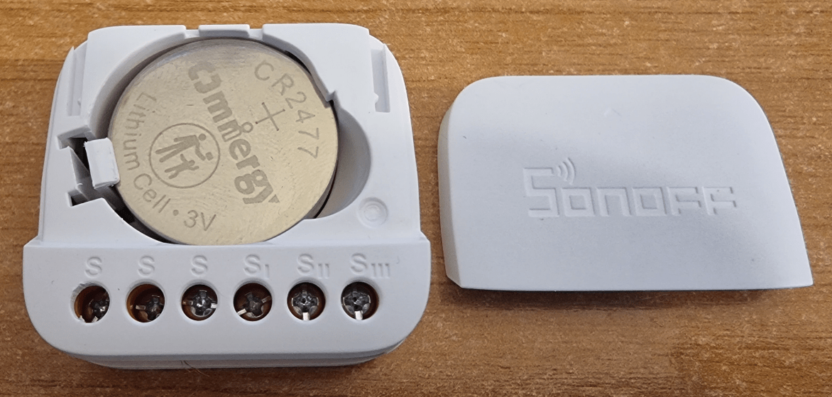 The S-MATE-2 unit has 6 connections – three are common – the other three are for switching – or rather to assist a normal switch or 2 or 3. Inside is a battery – a BIG CR2477 battery – so the device can operate in wall switch sockets where no neutral is available. The device can work alongside, say, a MiniR4 or simply be a sub-device of the Sonoff NSPanel Pro.