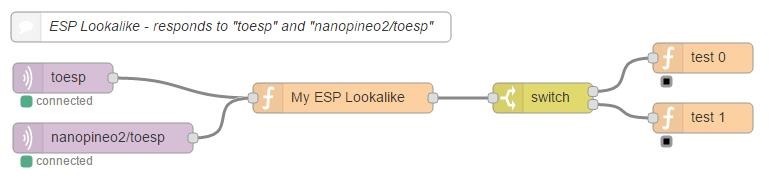 Simple enough. When pressed the node outputs a topic of nanopineo2/toesp and a payload of {out0:1}