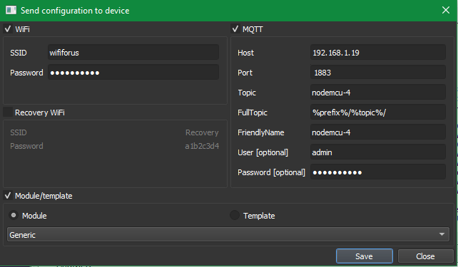 So what next? I pressed the “Tasmotize!” button above and seconds later the board was programmed with Tasmota and ready to have WiFi and MQTT credentials added. The next stage was to disconnect and reconnect the micro-USB lead and “Send config” which boils down to entering WiFi and MQTT credentials as well as giving the device a “friendly” name. I’d always assumed that meant “hostname” but read on.