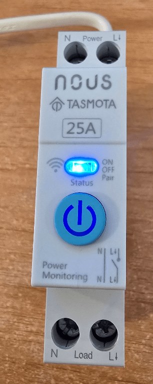 As you can see, right, the smartplug has a maximum capacity of 2300W (that’ll be non-inductive load) and as well as the Nous branding, shows Tasmota on the front.