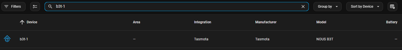 I just have to look for B3T-1 in Home Assistant (note I’m doing this a while after setting up as I went to make coffee).