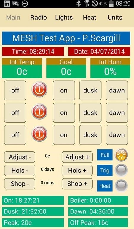 The image you see above right is typical of the control screens on my phone, I can control heating and lighting etc. and monitor the status of all outputs, the temperature, humidity and more – all using NETIO on my Android phone (it is also available for IOS). The control has several pages and only the current page generates Internet traffic so it is easy to end up with a really complex setup.