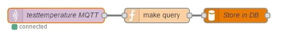 So I have an MQTT node taking in from the topic “testtemperature”. It passes this through a function node which turns that into a SQL INSERT. Here’s the code in the “function” block…(with luck this will save some of you a lot of messing about)