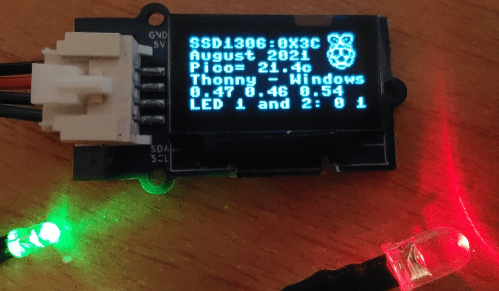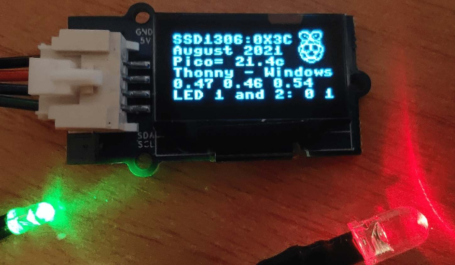 To make this permanent, one would name the Python script that is producing this output, main.py and have it run stand-alone. In the video below, I added a couple of alternating LEDs and made use of all four PICO ADCs.