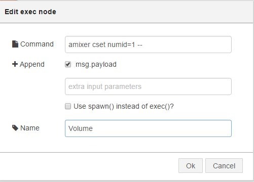 So now when powering up Node-Red I can ensure a fixed volume and have scope to have different levels for different applications – a low level for general speech or sounds – and a high level for, say, alarms.