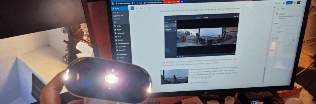 So far, so good – I’m suitably impressed. Ok, played all of the first evening with this – with the spotlights on etc. and the battery down from 33% to 22% – I guessed I really needed to give it a good charge – free via the solar panel if possible – otherwise simply by plugging the camera into a handy USB supply.