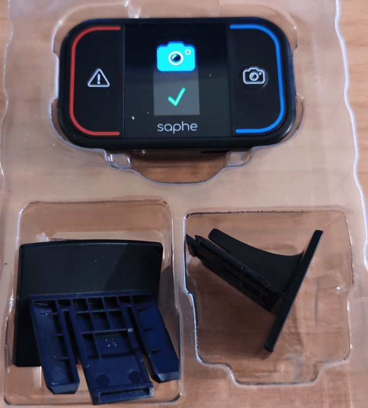 Both units come with a variety of mounting options – as they are cordless – Saphe Drive Mini (Europe) is rechargeable via USB, Saphe One+ (UK) has a battery claimed to last 18 months so you can fit them on the dash, in a grill or on the window. I chose the dash in each case.