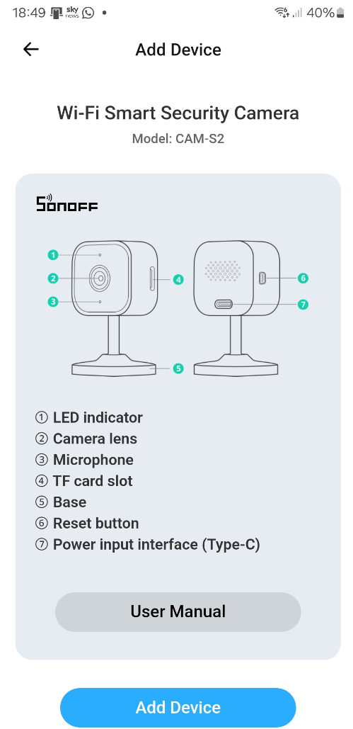 Add Device- WiFi Smart Security Camera – model CAM-S2