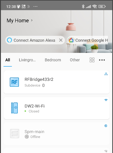 On power-up, the RFBridge had a blue flashing light which turned solid blue once the pairing was complete (a few seconds) – I took the opportunity to rename the unit to RFBridge433r2 (another few seconds) at which point the block for that device in the APP said “subdevice 0” as it should.