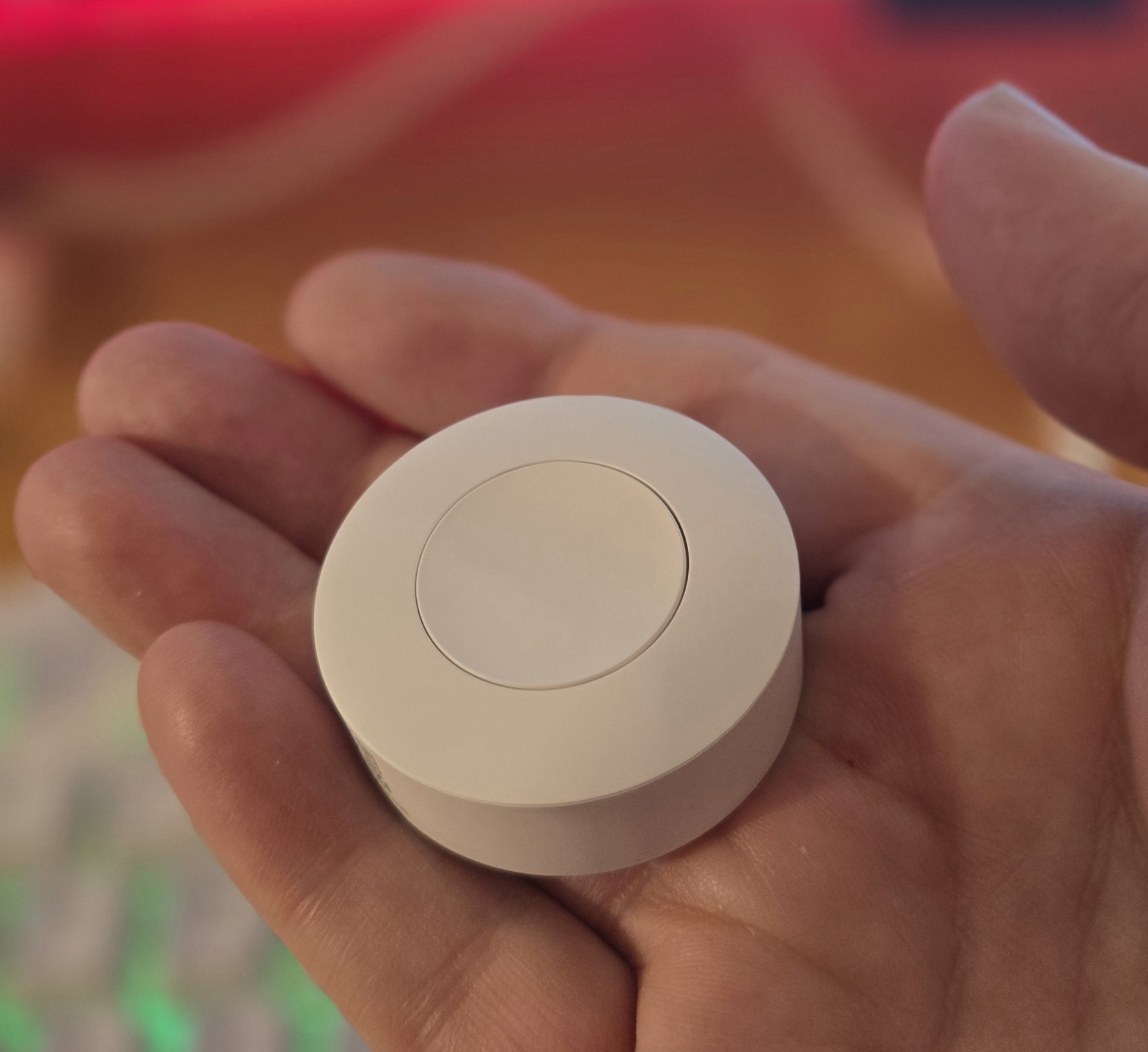 So, I use an Aqara button on the wall so that either of use as we enter the room can quickly turn off the lights. Great – but I spend more time changing batteries on these devices than I care to imagine.