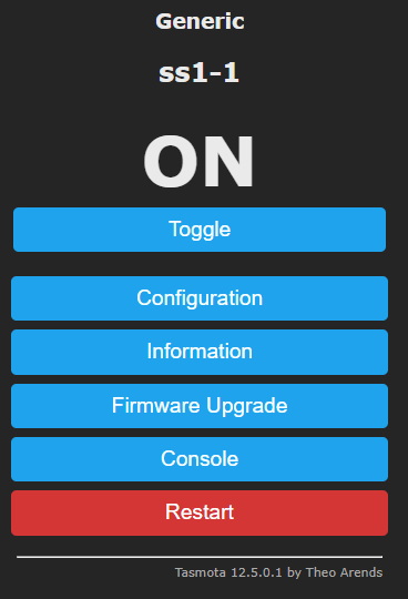 I went to the local Tasmota firmware update facility (in this case the device is locally called ss1-1.lan http://ss1-1.lan/) and seconds later – Tasmota 12.5.0.1 (Payton) up and running – yet another long-term project we can all count on.