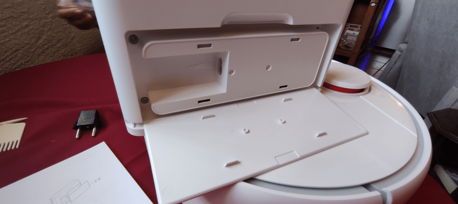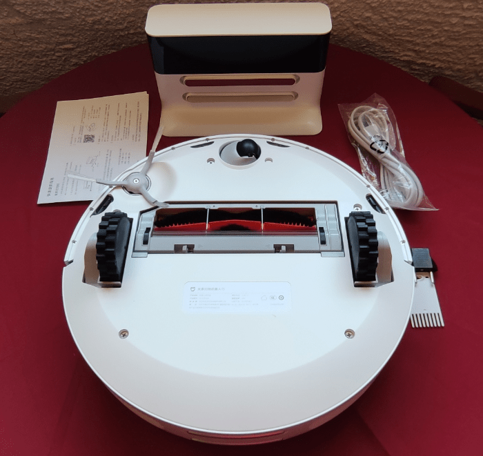 I plugged the charger stand into the mains at floor level and made sure the power (220v) was turned on – any excess cable can be neatly wrapped inside the base. After initially failing to understand a word when the Mijia 1S began to talk – and having failed to understand the Chinese-only instructions at first – I was ready to “throw in the towel”. There is a button on the vacuum which I pressed (after removing anything that looked like packaging) and with an attitude of “what do we have to lose” – I watched as the 1S came to life. It wandered around our (mixed carpet and stone as well as various obstacles such as our three cats, the odd chair, various cat bowls and stairs both up and down) living room floor with ease, cleaning up everything from dust to cat hairs.